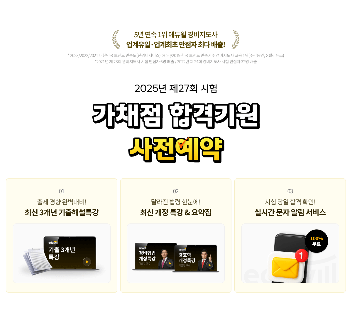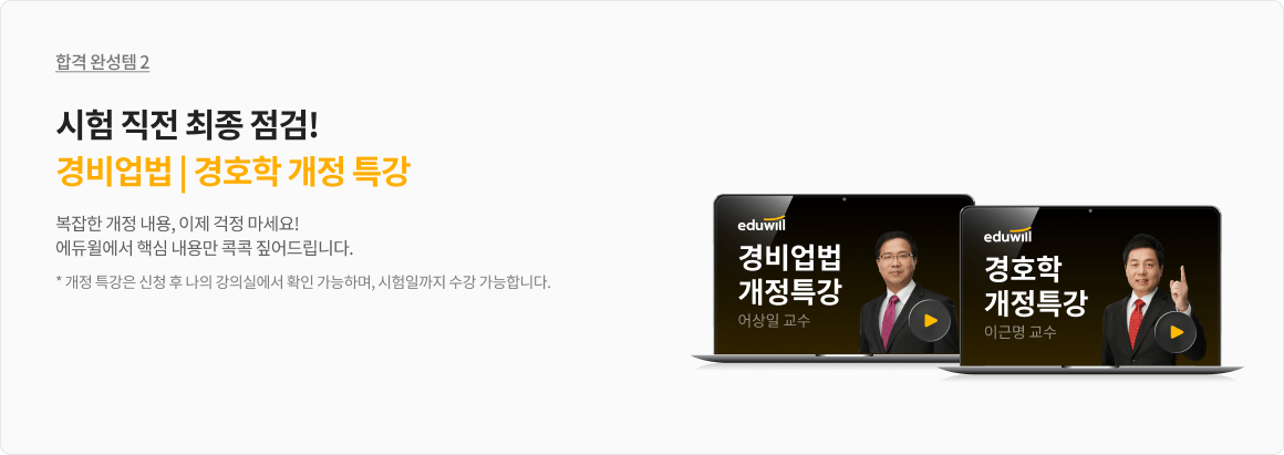 2025년 경비지도사 최종 합격을 위해 압도적 1위 에듀윌이 처음부터 끝까지 함께합니다.