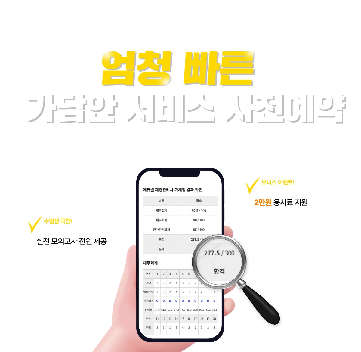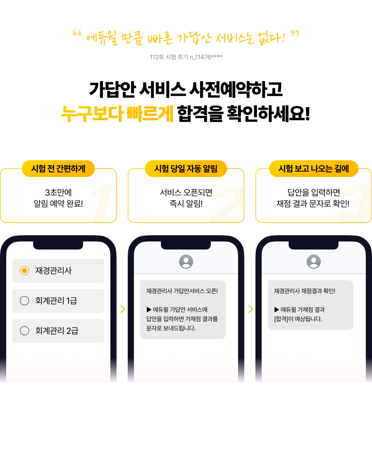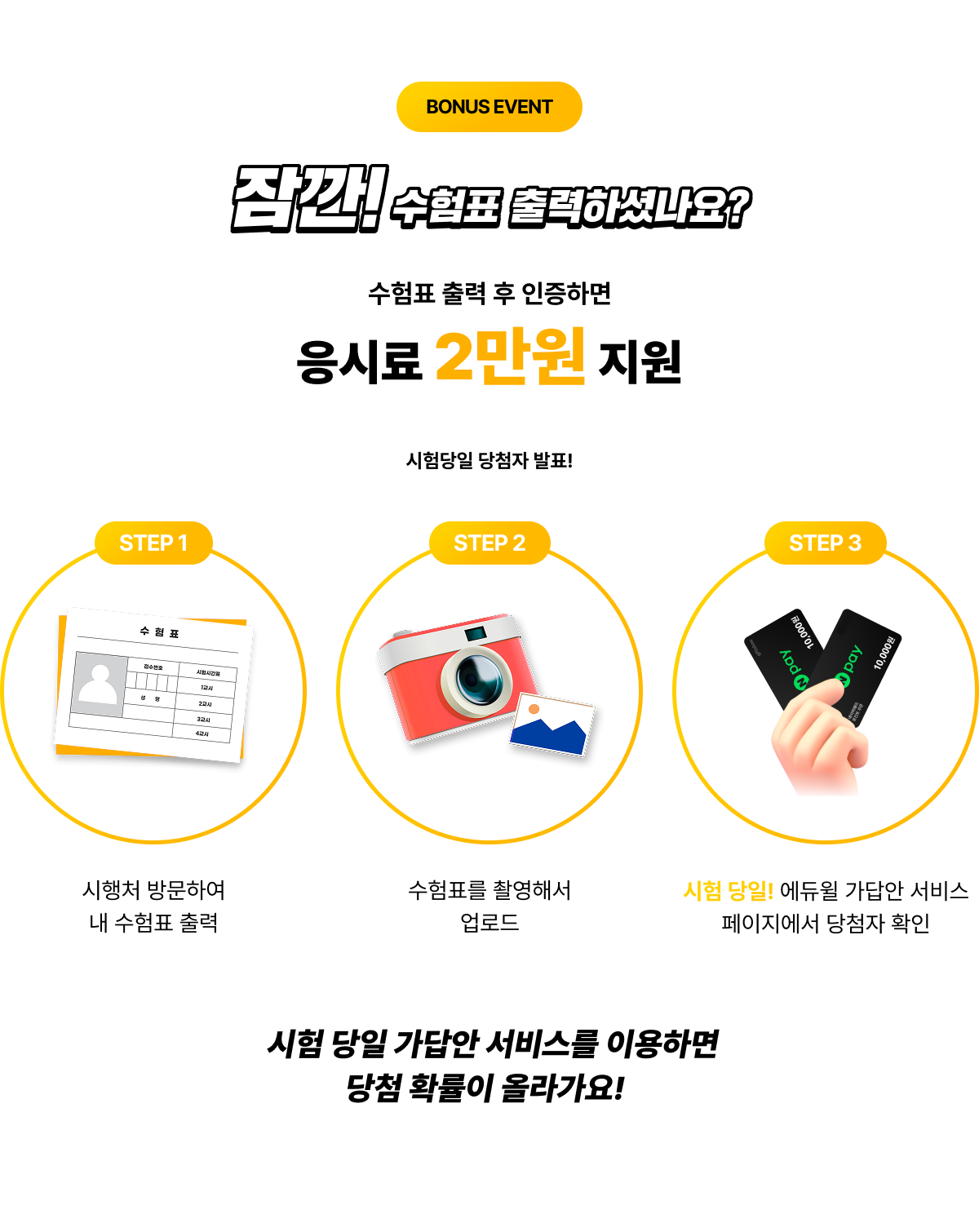 이벤트 참여자의 이름과 생년월일, 시험일시를 확인할 수 있어야 합니다. (에듀윌 회원정보와 일치해야 함)